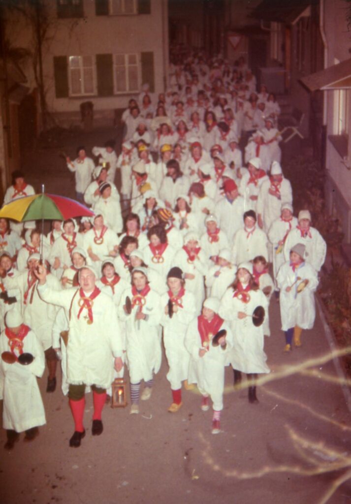 Im weißen Nachthemd, mit weißer Schlafmütze und einem roten Halstuch, das von einer Holzbrezel gehalten wird, ziehen die Hemdklunker unter Führung des Oberhemdklunkers durch die Straßen und bringen der noch schlafenden Bevölkerung mit allerlei Lärminstrumenten eine zünftige „Katzenmusik“ dar. Der Oberhemdklunker ruft bei diesem Umzug mehrmals den alten Haslacher Narrenspruch: „Mir sueche an de Fasent, wi sinn ihr denn, ihr Lütt?“
