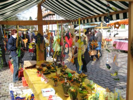 Beim Ostermarkt der Landfrauen gibt es nicht nur heimische Produkte vom Hof, sondern es sind auch Osterschmuck, Frühjahrsblumen und Frühjahrspflanzen im Angebot.